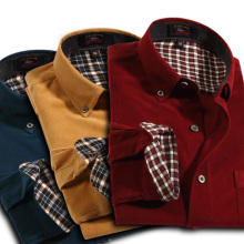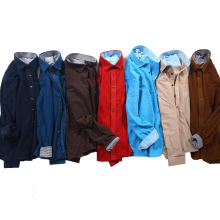 2017职场春秋新款男士灯芯绒长袖衬衫 男装纯色大码复古潮聚衬衣