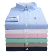 质检自由鲨春新款男士免烫牛津纺长袖纯色休闲衬衫 修身衬衣潮
