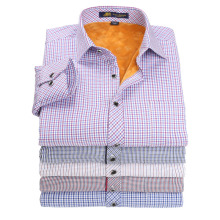 职场冬新款男装休闲加绒加厚长袖衬衫 纯色保暖修身衬衣大码寸衫