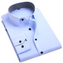 2017春新款男士长袖衬衫 商务休闲职业蓝白色免烫牛津纺正装衬衣
