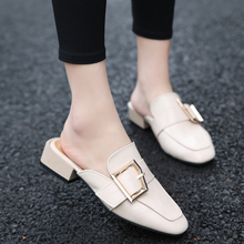 新款包头半拖鞋女方跟时尚懒人鞋金属扣无后跟女单鞋2017方头拖鞋