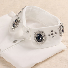 韩国可爱衬衫衣领女水钻黑色百搭假领 装饰假领子大水晶节约领