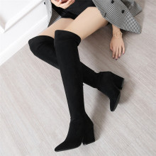 秋冬季过膝长靴弹力瘦腿靴尖头粗跟高跟女鞋后拉链骑士靴女靴大码