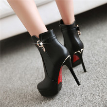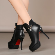 秋鞋冬靴新款英伦超高跟女鞋皮带扣细跟短筒短靴防水台马丁靴女靴