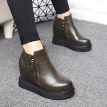 坡跟短靴内增高厚底2016秋冬新款高跟防水台松糕底系带及裸靴加绒