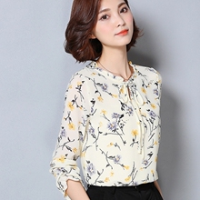 V领雪纺衫长袖2017春装新款韩版宽松百搭印花雪纺衬衫女打底上衣