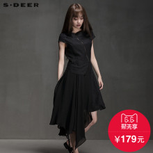 【上新】sdeer圣迪奥专柜斜襟雪纺拼接棉麻连衣裙S15281277