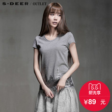 s.deer圣迪奥女装简约文艺T恤短袖T恤S14280137