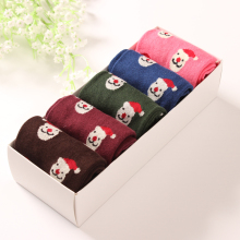 5双礼盒装 秋季女士全棉袜子 纯棉 圣诞老人花边女生中筒长袜子