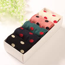 5双礼盒装 秋季女士全棉袜子,袜子女 女生可爱圆点纯棉中筒袜子