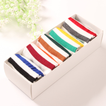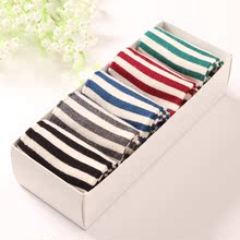 5双礼盒装 春秋女棉袜 袜子女薄款罗口分色条纹纯棉中筒袜子 包邮