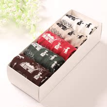 5双礼盒装 秋季女士全棉袜子 袜子女 女生时尚圣诞甜美纯棉中筒袜