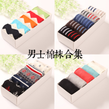 5双礼盒装 秋季男士全棉中筒袜子 袜子男人百搭纯棉长袜子 包邮