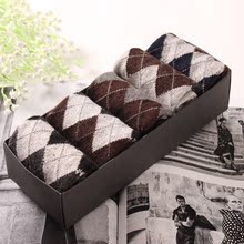 5双礼盒装 冬季男士加厚羊毛袜 袜子男 男人商务双菱格中筒长袜子