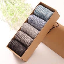 5双礼盒装 秋冬男士抽条款全棉中筒袜 袜子男 男人复古防臭纯棉袜