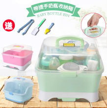 可手提婴儿奶瓶收纳箱宝宝餐具多功能收纳盒干燥架防尘奶粉储存盒