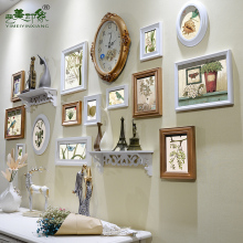 照片墙欧式韩式相框墙创意置物架组合相片框实木挂墙相框客厅卧室