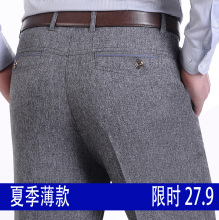 中老年人男裤夏季薄款中年男士休闲裤宽松西裤爸爸装直筒长裤子男