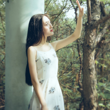 蜜搭 云朵般仙气 前圆领后V领 背后系带 绣花文艺气质无袖连衣裙