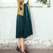 恋物志/蜜搭原创优雅怀旧文艺复古高腰伞裙 祖母绿中长款半身裙