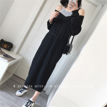 ◆ANNA2017S/S◆春夏新品 特别配色假两件针织腰带长裙(三色入)