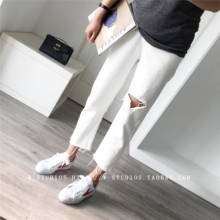 ◆ANNA2017S/S◆春夏新品 必入百搭款 破洞脚口开叉小直筒牛仔裤