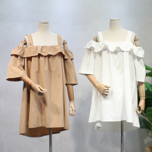 菲尔丹 一字领露肩吊带五分袖娃娃衫 韩版春夏季大码上衣女771027