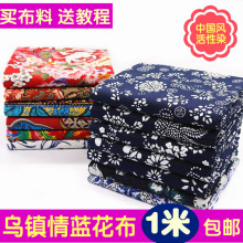 加厚活性纯棉乌镇蓝印花布青花面料中国风手工染民族桌布窗帘布料