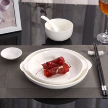 带柄陶瓷盘子 汤盘深盘饭盘烹饪盘圆盘耳朵盘 骨瓷盘套装碗果盘碟
