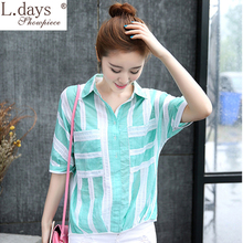加肥加大码女装2017夏季衬衫女显瘦条纹上衣宽松短袖不规则打底衫
