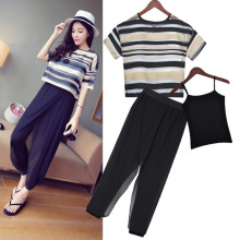套装女2017新款女装夏季韩版休闲九分哈伦裤两件套夏天时尚夏装潮
