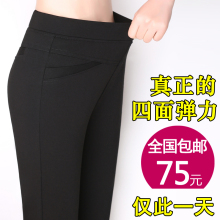 2016秋装新款女装 高腰休闲裤女长裤直筒裤 中年大码黑色弹力女裤