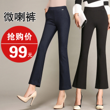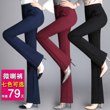 2017春秋女裤高腰弹力直筒微喇裤显瘦喇叭裤大码中老年休闲长裤夏