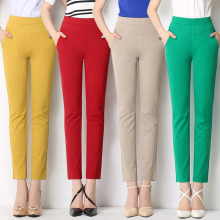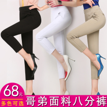 2017夏季薄款九分裤高腰女裤子松紧腰小脚裤弹力大码中年妈妈裤夏