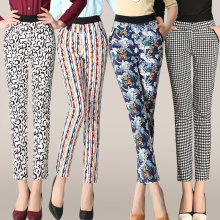 花裤子女款九分裤2017夏装薄款印花小脚裤女显瘦大码高腰妈妈女裤