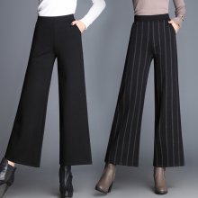 2016秋冬新款高腰条纹阔腿裤女九分裤弹力松紧腰大码休闲裤宽腿裤