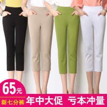 七分裤女夏装薄款女裤子高腰弹力直筒裤大码中老年妈妈装休闲裤夏