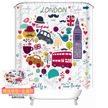 美国同款卡通涤纶加厚防水防霉浴帘布浴室帘隔断帘包邮送环可定制