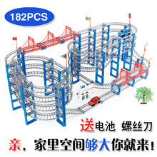 儿童男孩玩具小汽车赛车多层大型电动轨道车套装组合益智拼装积木