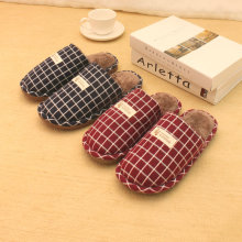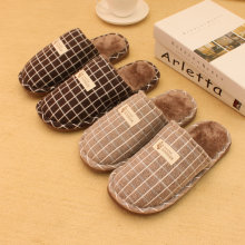 小码冬季棉拖鞋男女情侣保暖居家居防水防滑简约方格毛毛拖鞋冬天