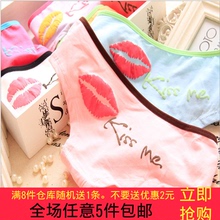 包邮 女士内裤kiss嘴唇印纯棉女士内裤卡通印花运动舒适全棉内裤