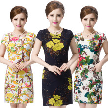 2016夏季新款中老年女装连衣裙中年妈妈装大码修身短袖夏装花裙子