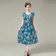 2017女装新款夏装短袖中老年连衣裙女修身大码中年妈妈装碎花裙子
