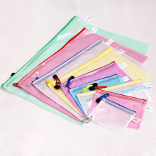 网格文件袋拉链A4B4 透明防水办公彩色收纳袋 增票据文具B5拉边A5
