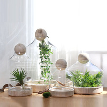 DIY透明玻璃罩罐盖北欧创意家居饰品摆件原木底玻璃罩子礼品套装