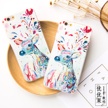 苹果6s iphone6 艺术西方油画驯鹿手机壳 创意硅胶浮雕包边保护套