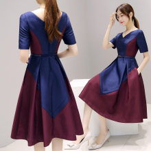 欧货2016夏装新款韩版V领中长款短袖连衣裙打底修身A字大摆裙女夏