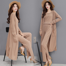 时尚套装2016秋装新款韩版休闲针织衫吊带背心阔腿裤开衫三件套女