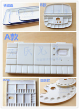 包邮 陶瓷水彩调色瓷盘国画调色盘瓷盘 多点波浪瓷盘 方形椭圆
