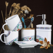 仿珐琅陶瓷卫浴五件套浴室洗漱用品套装牙杯牙具刷牙杯漱口杯套装